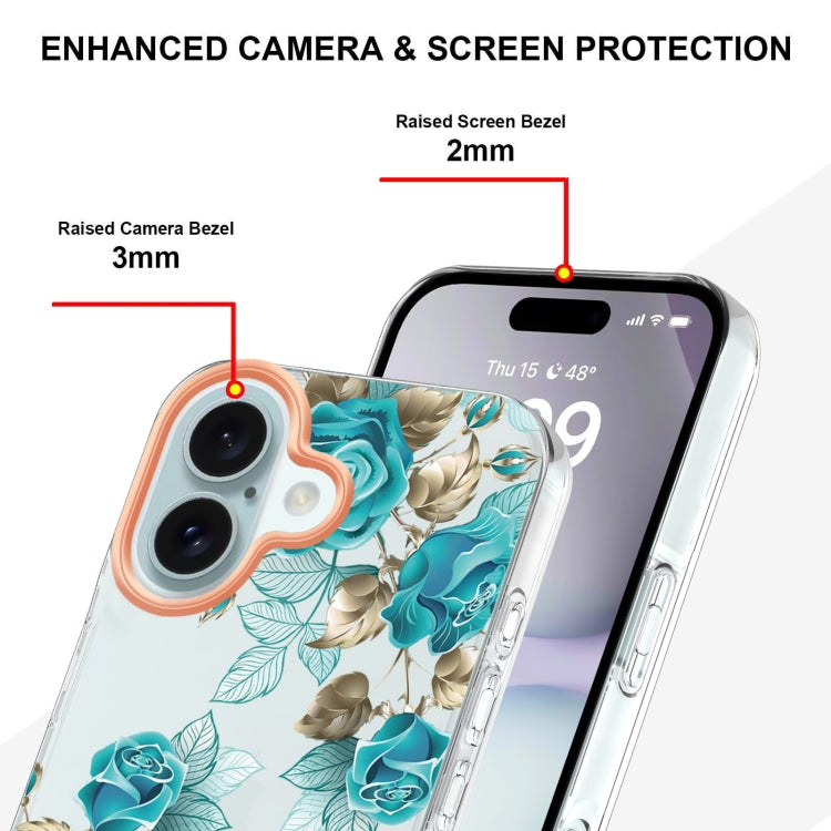 For iPhone 16 Plus Flowers and Plants Series IMD TPU Phone Case(Blue Rose)