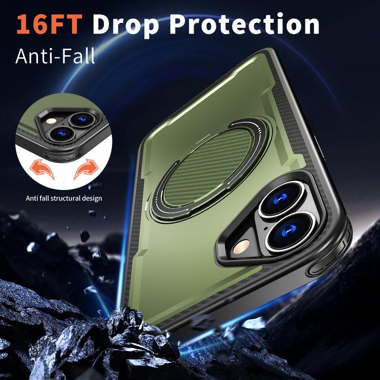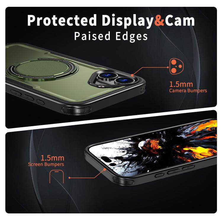 For iPhone 16 Plus kalebol Metal 360 Degree Rotation Holder MagSafe Phone Case(Green)