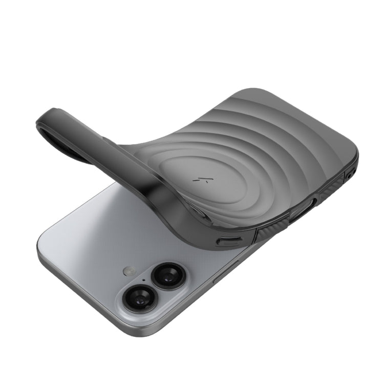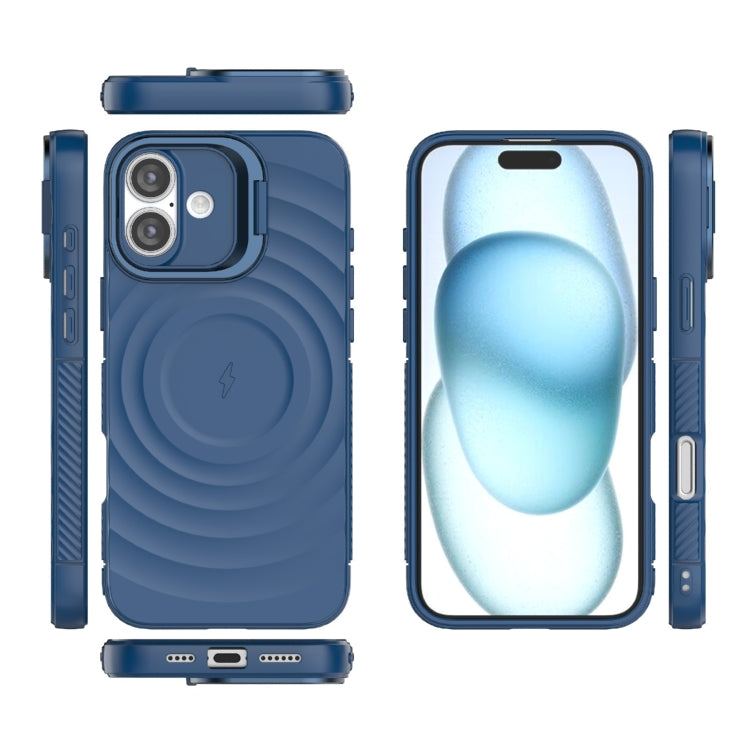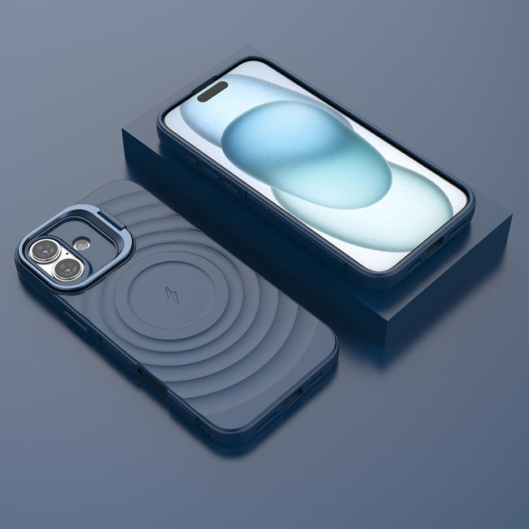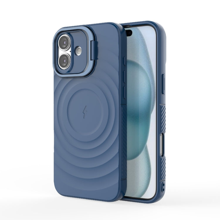 For iPhone 16 Plus Lens Frame Bracket Corrugated MagSafe Phone Case(Dark Blue)