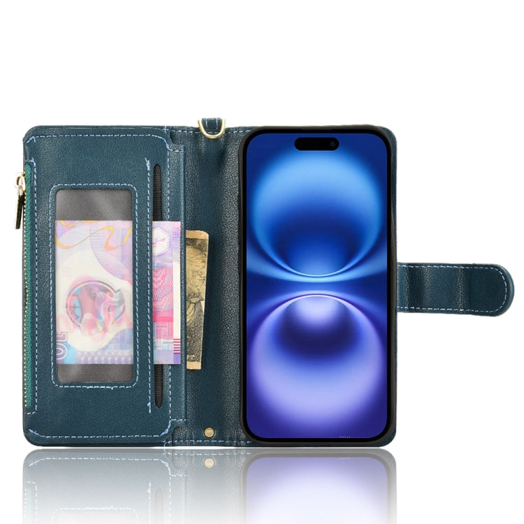 For iPhone 16 Plus Litchi Texture Zipper Leather Phone Case(Green)