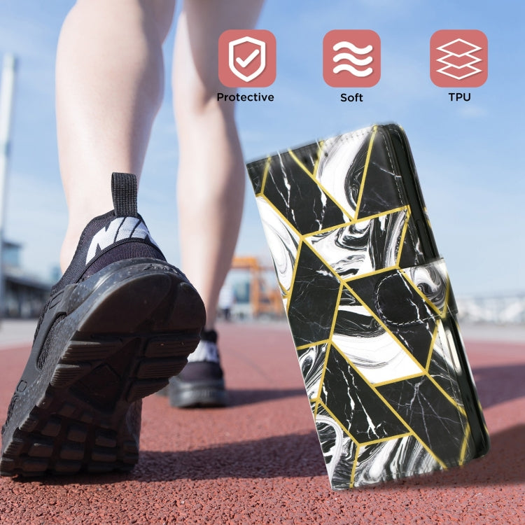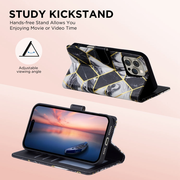 For iPhone 16 Plus Marble Bronzing Stitching Leather Phone Case(Black)