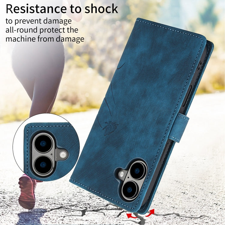 For iPhone 16 Plus Orchid Butterfly Embossed Leather Phone Case(Blue)