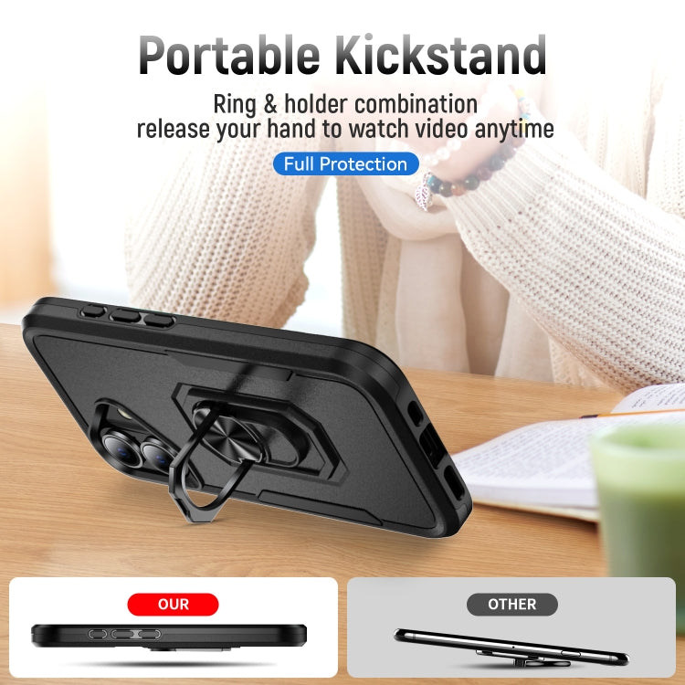 For iPhone 16 Plus Pioneer Armor Heavy Duty PC + TPU Phone Case with Holder(Black)