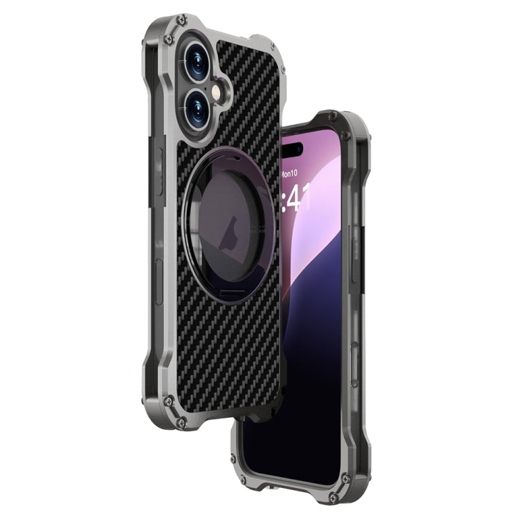 For iPhone 16 Plus R-JUST RJ51-1 Hollow Rotating Holder MagSafe Magnetic Metal Phone Case(Silver Grey)