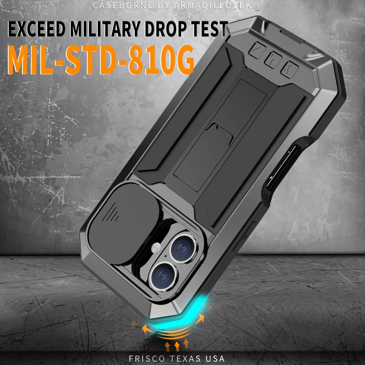 For iPhone 16 Plus R-JUST Sliding Camera IP54 Life Waterproof Holder Phone Case(Black)