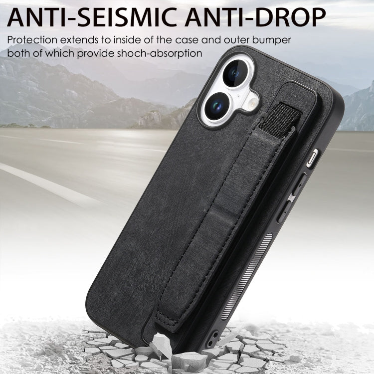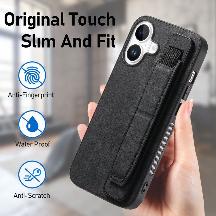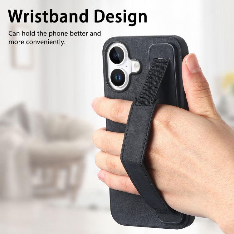 For iPhone 16 Plus Retro Wristband Holder Leather Back Phone Case(Black)