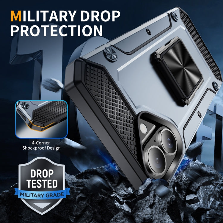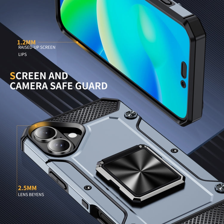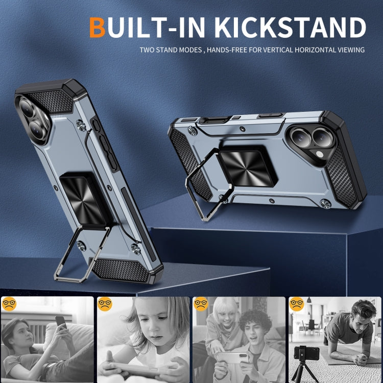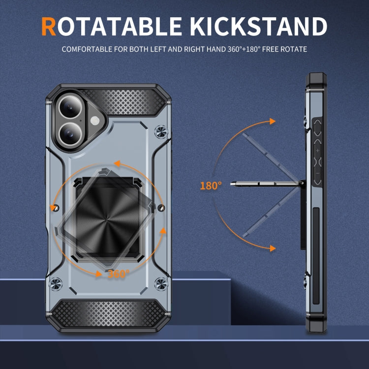 For iPhone 16 Plus Shockproof Metal Holder Phone Case(Grey)