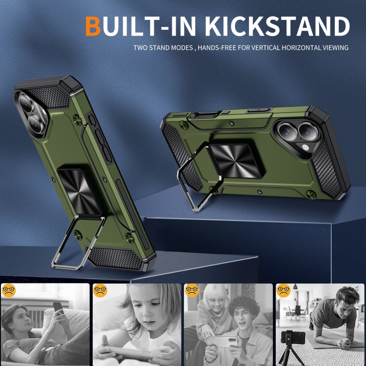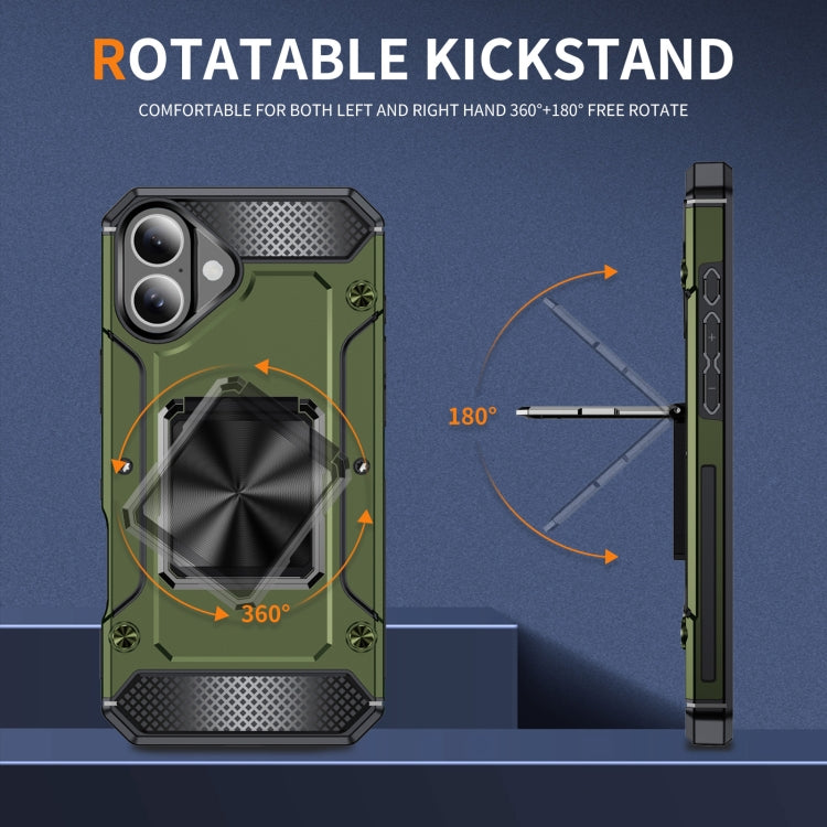 For iPhone 16 Plus Shockproof Metal Holder Phone Case(Olive Green)