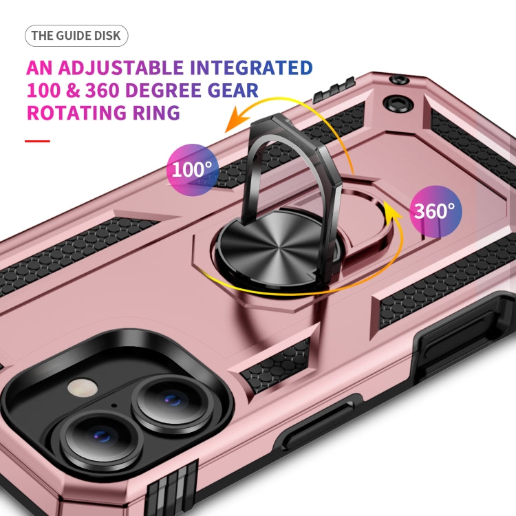 For iPhone 16 Plus Shockproof TPU Hybrid PC Phone Case with Holder(Rose Gold)