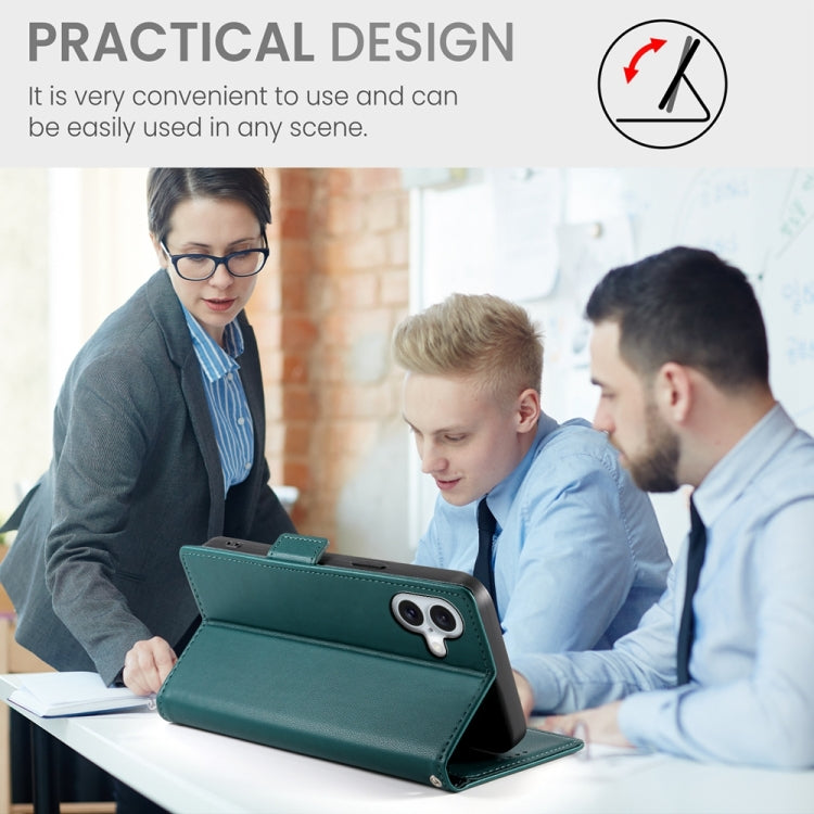 For iPhone 16 Plus Side Buckle Magnetic Frosted Leather Phone Case(Dark Green)