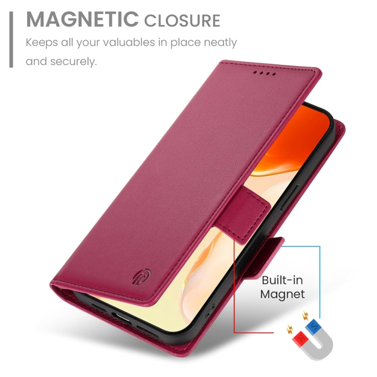 For iPhone 16 Plus Side Buckle Magnetic Frosted Leather Phone Case(Wine Red)