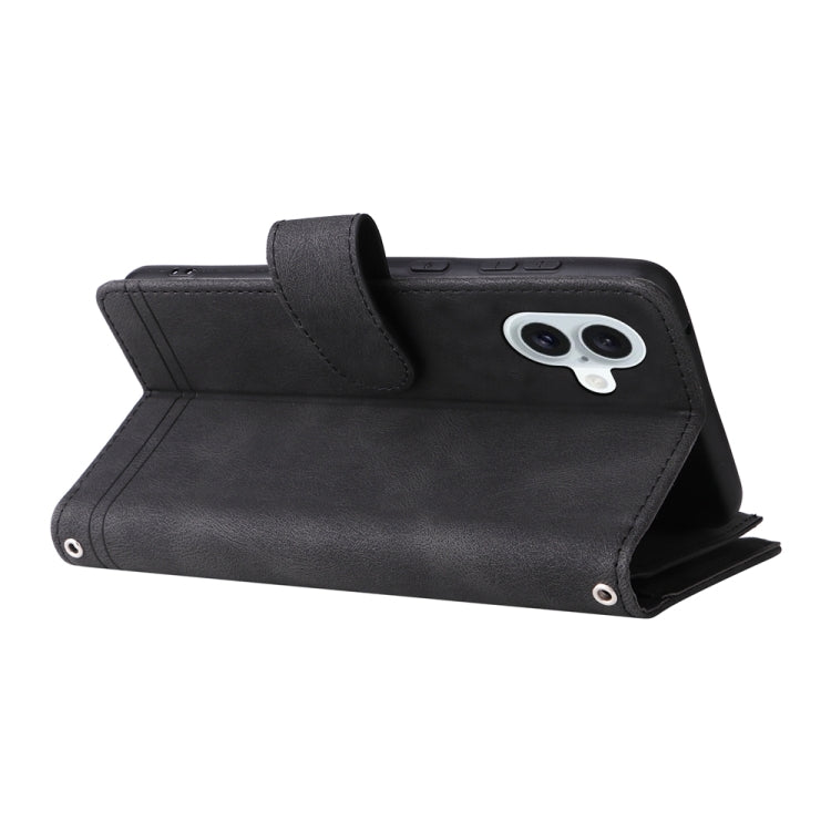 For iPhone 16 Plus Skin Feel Multi-Card Wallet Zipper Leather Phone Case(Black)