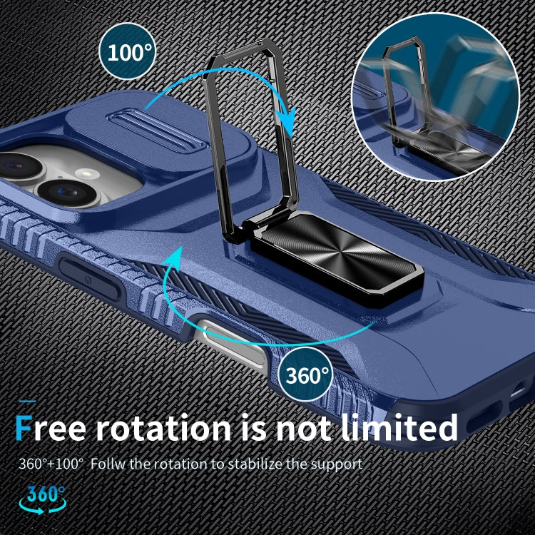 For iPhone 16 Plus Sliding Camshield Holder Phone Case(Blue)