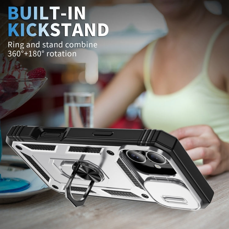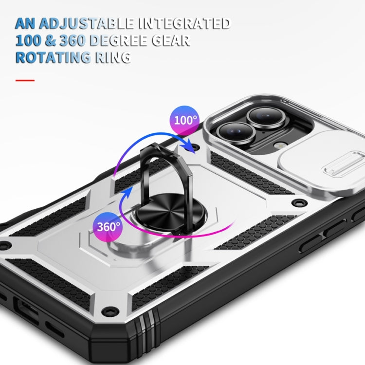 For iPhone 16 Plus Sliding Camshield TPU + PC Phone Case with Holder(White+Black)