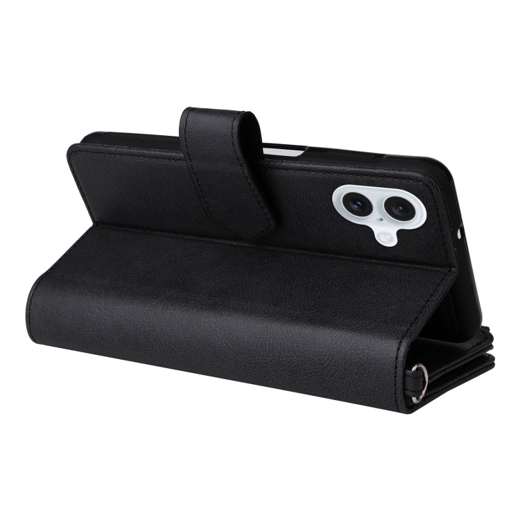 For iPhone 16 Plus Solid Color 2 in 1 Zipper Shockproof Phone Case(Black)