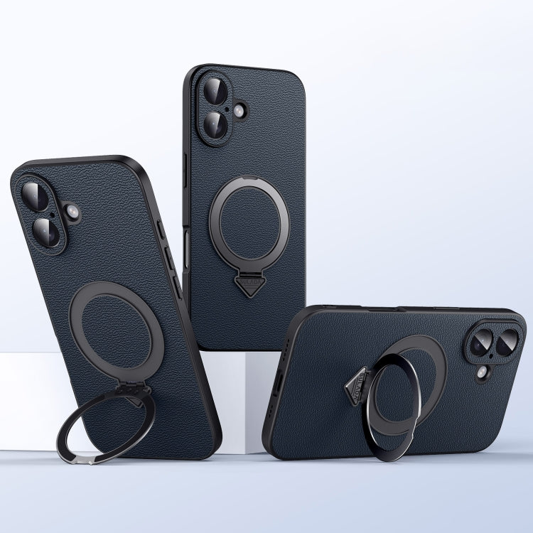 For iPhone 16 Plus SULADA Top Grain Leather MagSafe Magnetic Holder Phone Case(Blue)