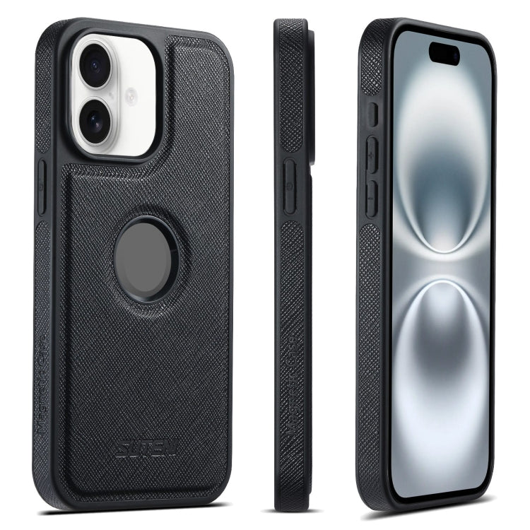 For iPhone 16 Plus Suteni G1 Cross Texture MagSafe Phone Case(Black)