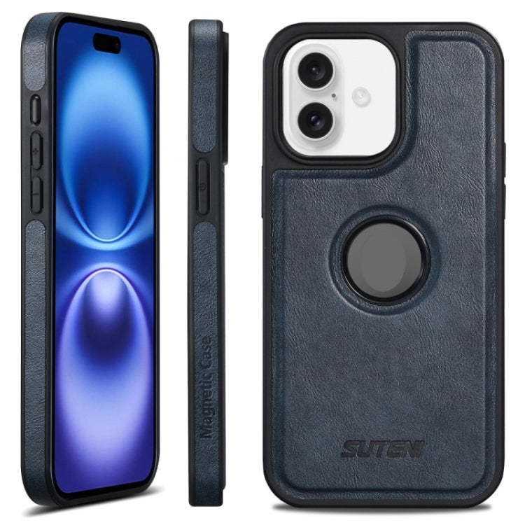 For iPhone 16 Plus Suteni G1 Magsafe Leather Back Phone Case(Blue)