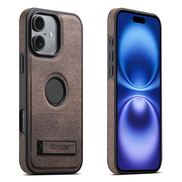 For iPhone 16 Plus Suteni G2 Holder Denim Leather Back MagSafe Phone Case(Brown)