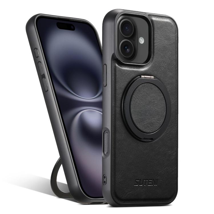 For iPhone 16 Plus Suteni G3 Oil Wax 360 Rotation Holder MagSafe Back Phone Case(Black)