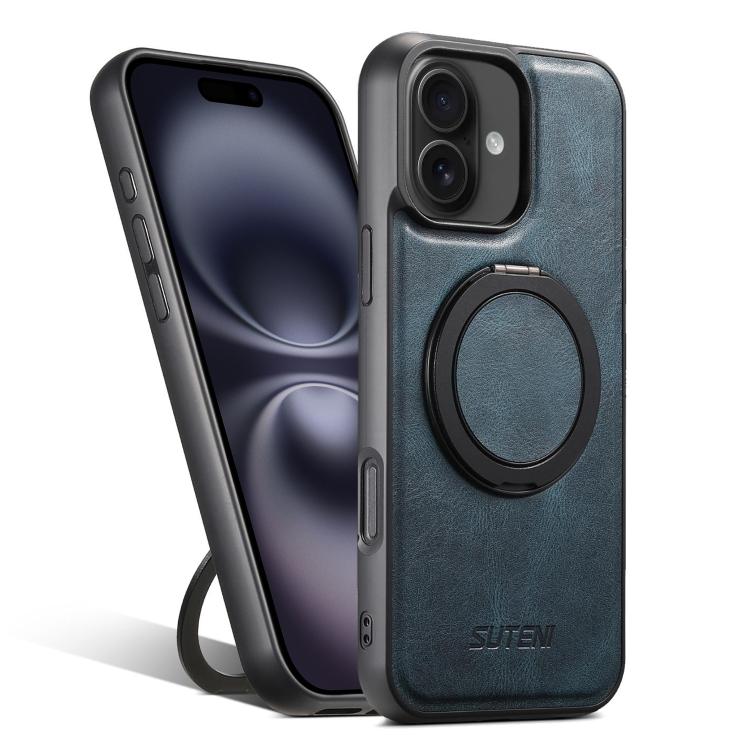 For iPhone 16 Plus Suteni G3 Oil Wax 360 Rotation Holder MagSafe Back Phone Case(Blue)