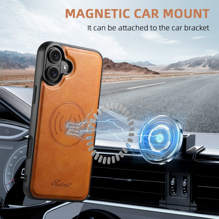 For iPhone 16 Plus Suteni H17 Oil Eax Leather MagSafe Detachable Wallet Phone Case(Khaki)
