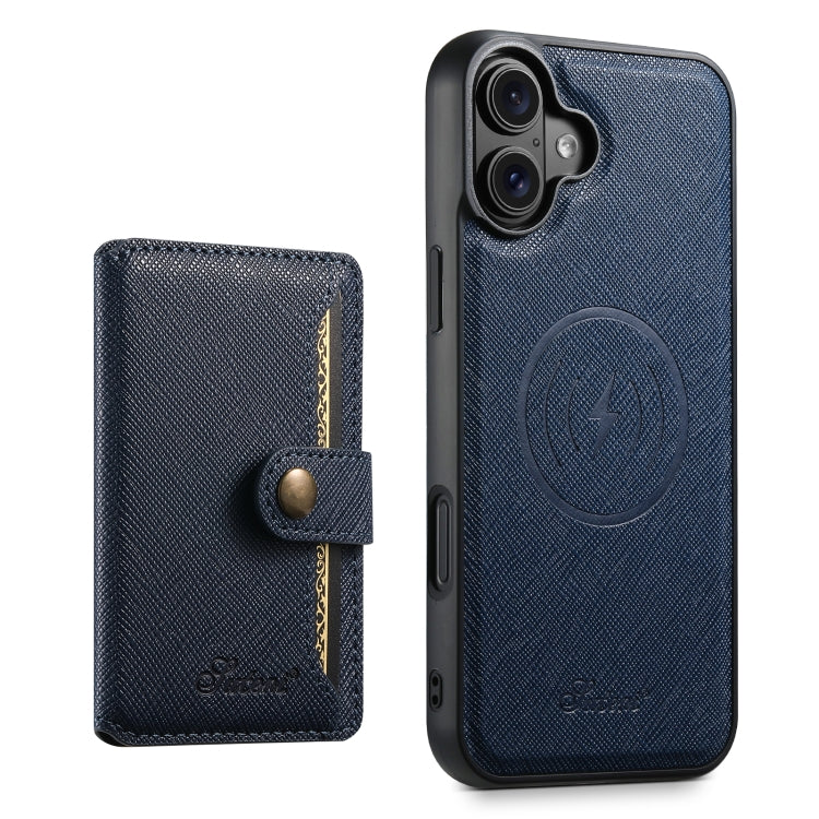For iPhone 16 Plus Suteni H20 Cross-Grain MagSafe Horizontal Card Bag Back Phone Case(Blue)