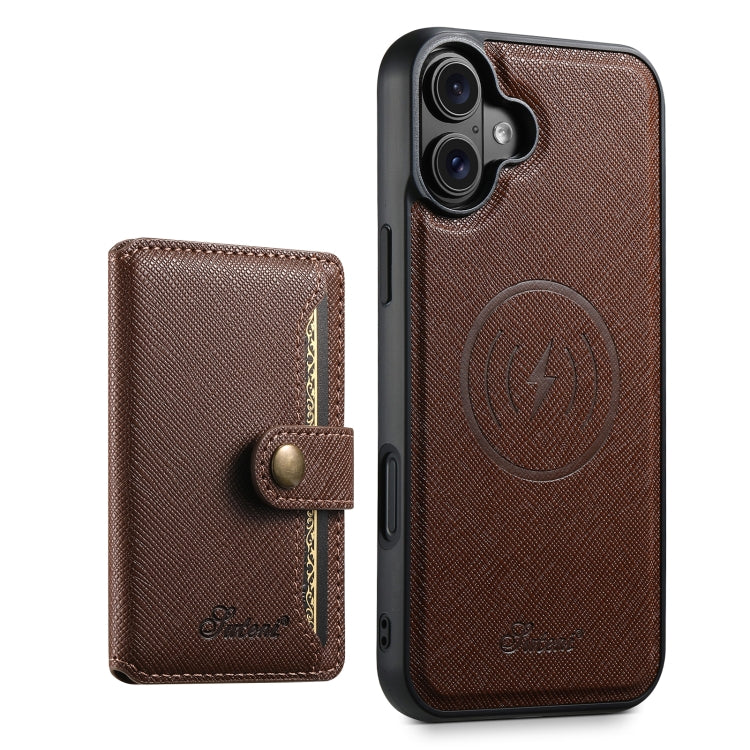 For iPhone 16 Plus Suteni H20 Cross-Grain MagSafe Horizontal Card Bag Back Phone Case(Brown)