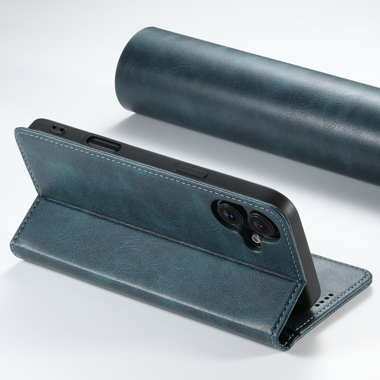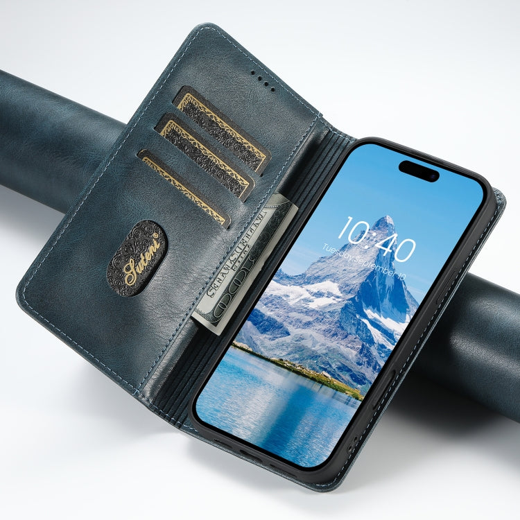 For iPhone 16 Plus Suteni J02 Oil Wax Wallet Leather Phone Case(Blue)