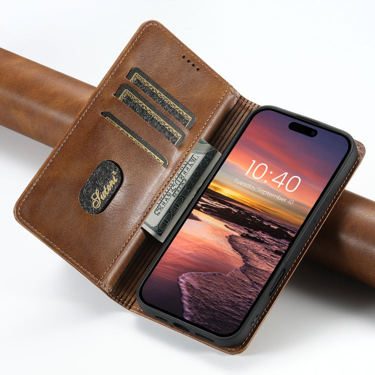 For iPhone 16 Plus Suteni J02 Oil Wax Wallet Leather Phone Case(Brown)
