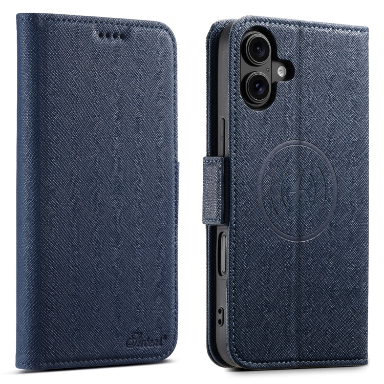 For iPhone 16 Plus Suteni J08 Multifunctional Cross Texture MagSafe Leather Phone Case(Blue)