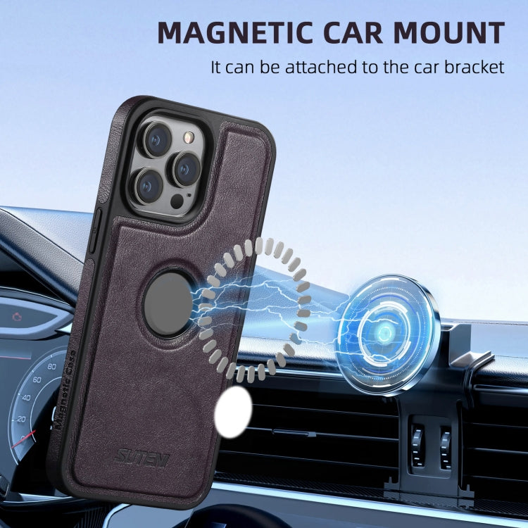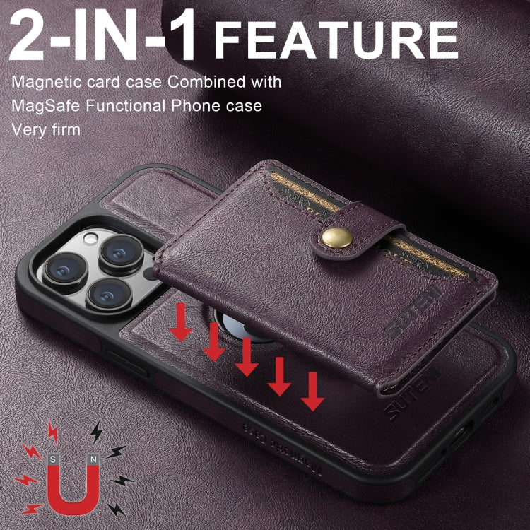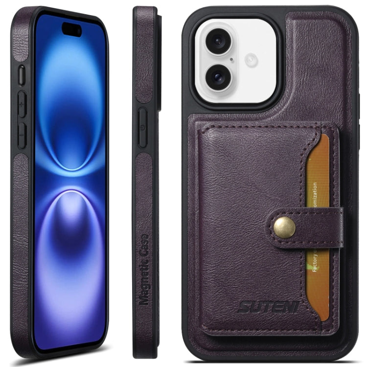 For iPhone 16 Plus Suteni M1 Oil Wax MagSafe Detachable Horizontal Card Bag Phone Case(Purple)