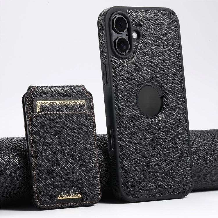 For iPhone 16 Plus Suteni M2 Cross-Grain MagSafe Vertical Card Back Phone Case(Black)