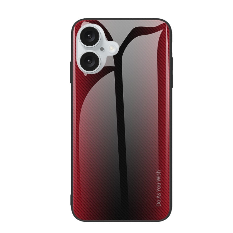 For iPhone 16 Plus Texture Gradient Glass TPU Phone Case(Red)