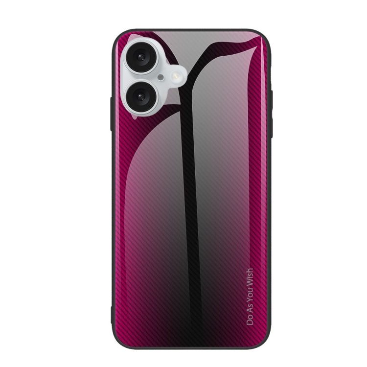 For iPhone 16 Plus Texture Gradient Glass TPU Phone Case(Rose Red)