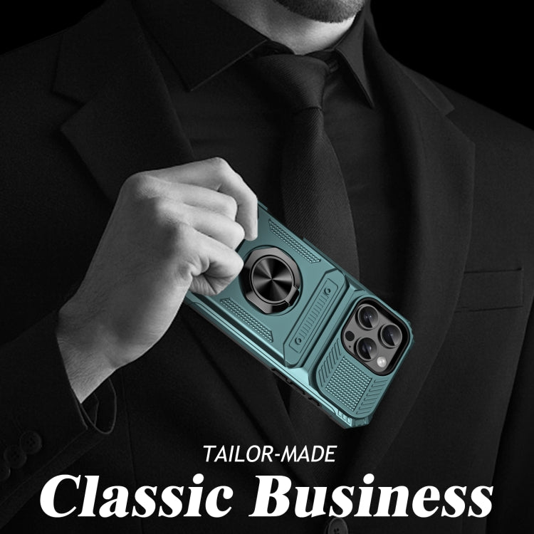 For iPhone 16 Plus TPU+PC Shockproof Card Phone Case with Metal Ring Holder(Green)
