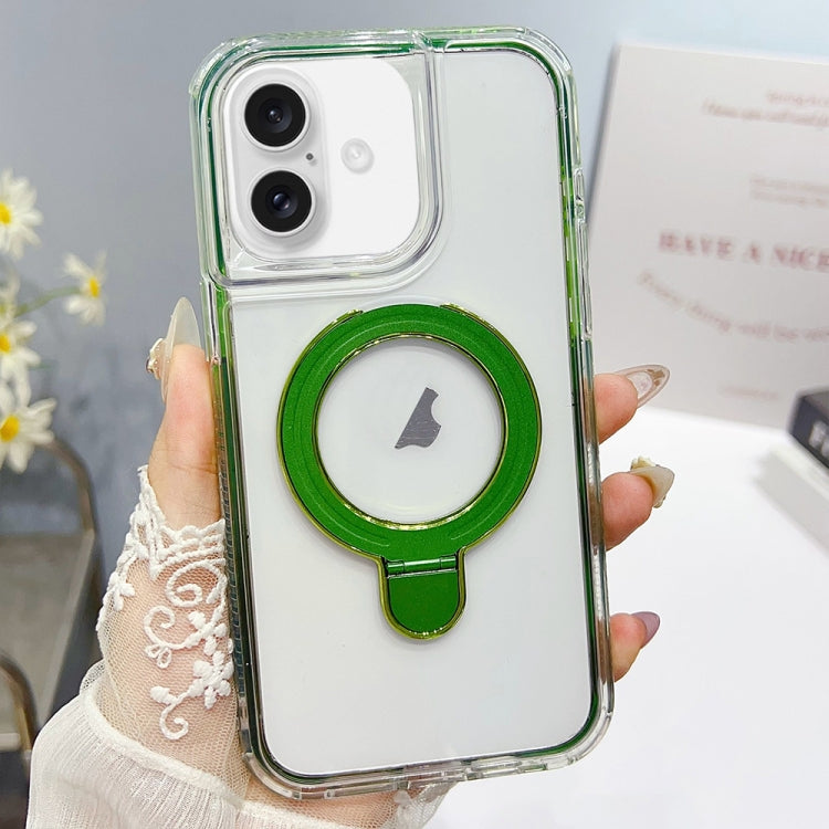 For iPhone 16 Plus Translucent 3 in 1 Holder MagSafe Phone Case(Green)