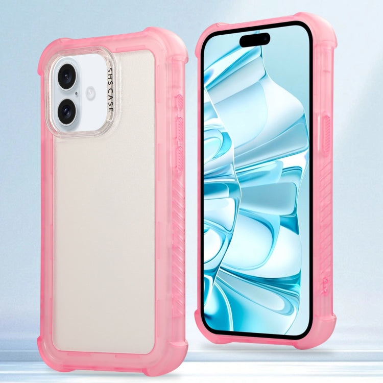 For iPhone 16 Plus Transparent Matte TPU Hybrid PC 3-in-1 Phone Case(Pink)