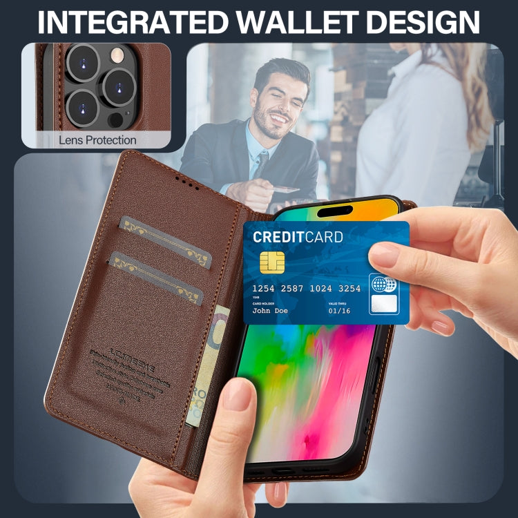 For iPhone 16 Pro Max LC.IMEEKE L1 Series Frosted Fine Texture PU Phone Case(Brown)