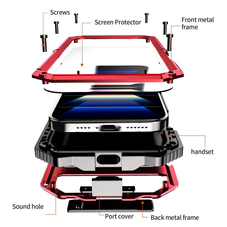 For iPhone 16 Pro Max R-JUST Life Waterproof Dustproof Shockproof Holder Phone Case(Red)