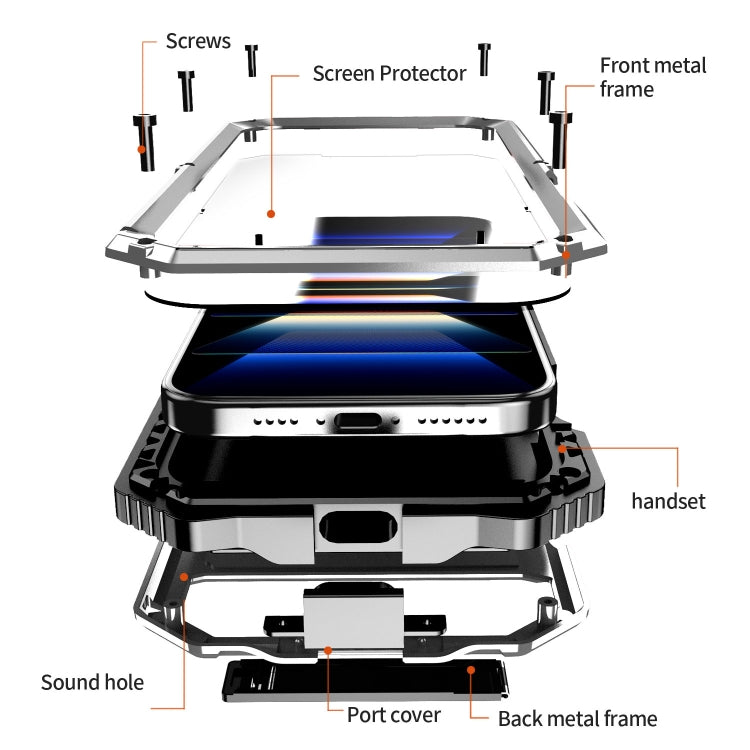 For iPhone 16 Pro Max R-JUST Life Waterproof Dustproof Shockproof Holder Phone Case(Silver)