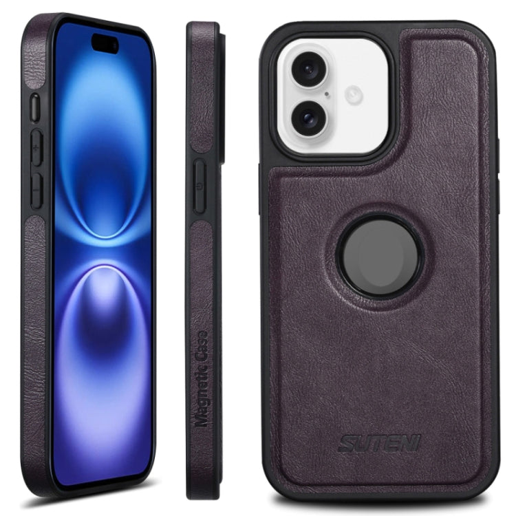 For iPhone 16 Suteni G1 Magsafe Leather Back Phone Case(Purple)