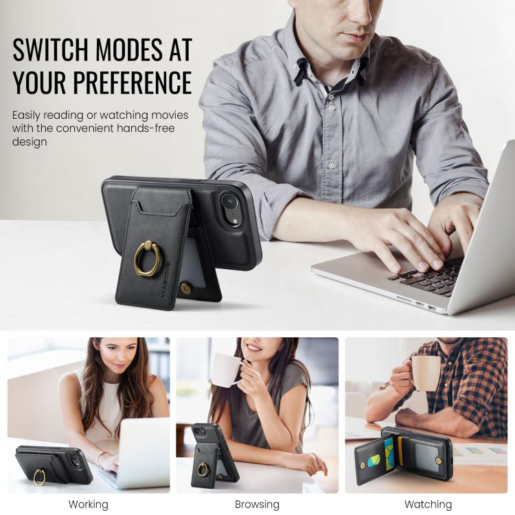 For iPhone 16e MAGKING K1 MagSafe Detachable Wallet RFID Back Cover Phone Case(Black)