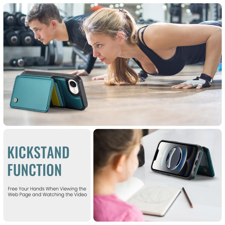 For iPhone 16e JEEHOOD J05 Business Magnetic Style RFID Leather Phone Case(Blue Green)