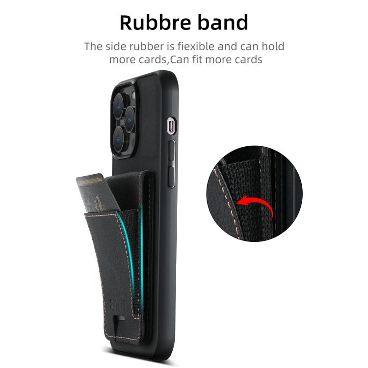 For iPhone 16e Suteni H03 Litchi Leather Card Bag Stand Back Phone Case(Black)