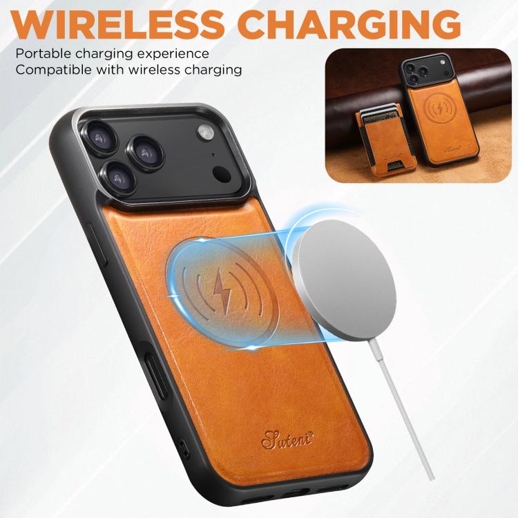 For iPhone Air Suteni H17 Oil Eax Leather MagSafe Detachable Wallet Phone Case(Khaki)