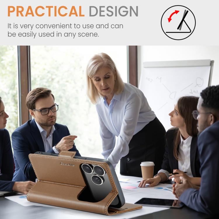 For iPhone 17 Pro CaseMe 023 Butterfly Buckle Litchi Texture RFID Anti-theft Leather Phone Case(Brown)
