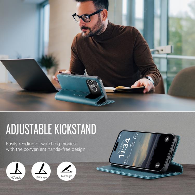 For iPhone 17 Pro Max CaseMe 033 Calf Leather Lining Microfibre RFID Blocking Phone Case(Green)
