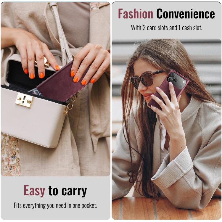 For iPhone 17 Pro Max CaseMe 033 Calf Leather Lining Microfibre RFID Blocking Phone Case(Red)