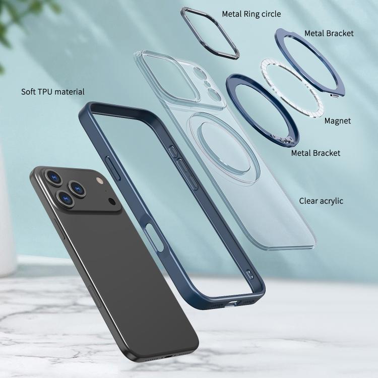 For iPhone 17 Pro Max kalebol MagSafe Metal Ring Holder Phone Case(Blue)